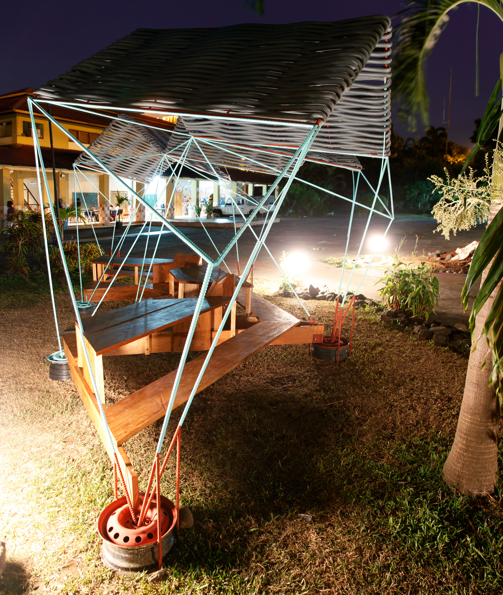 Inteligencias Colectivas’ work operates at all scales. Depending on the context, the group works with furniture, installations, public infrastructure, and architectural projects. These are usually self-initiated­ by collective members, ensuring that each project is rooted in a local context. The use of found objects and waste streams is heavily emphasized as a budgetary consideration and as a formative ethos of the group.