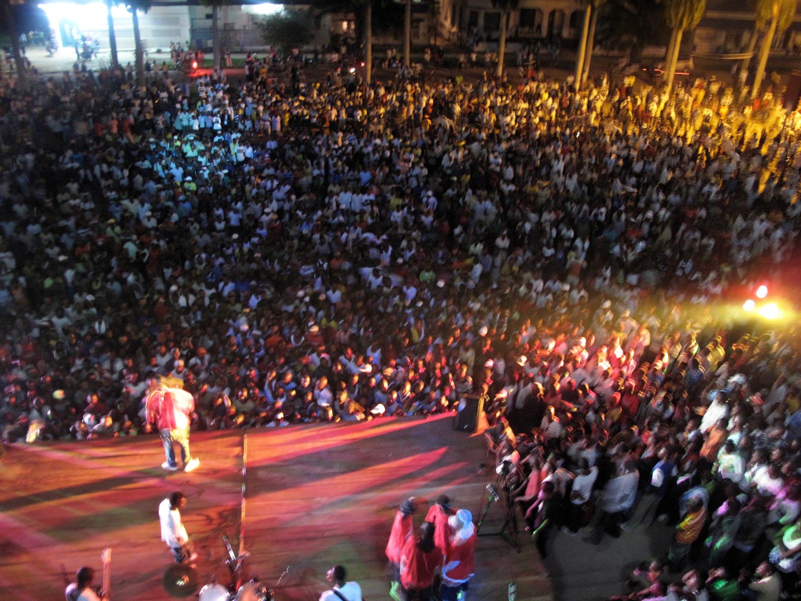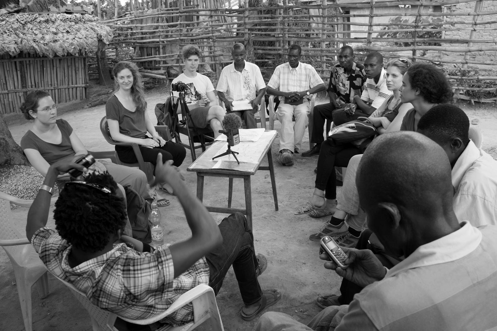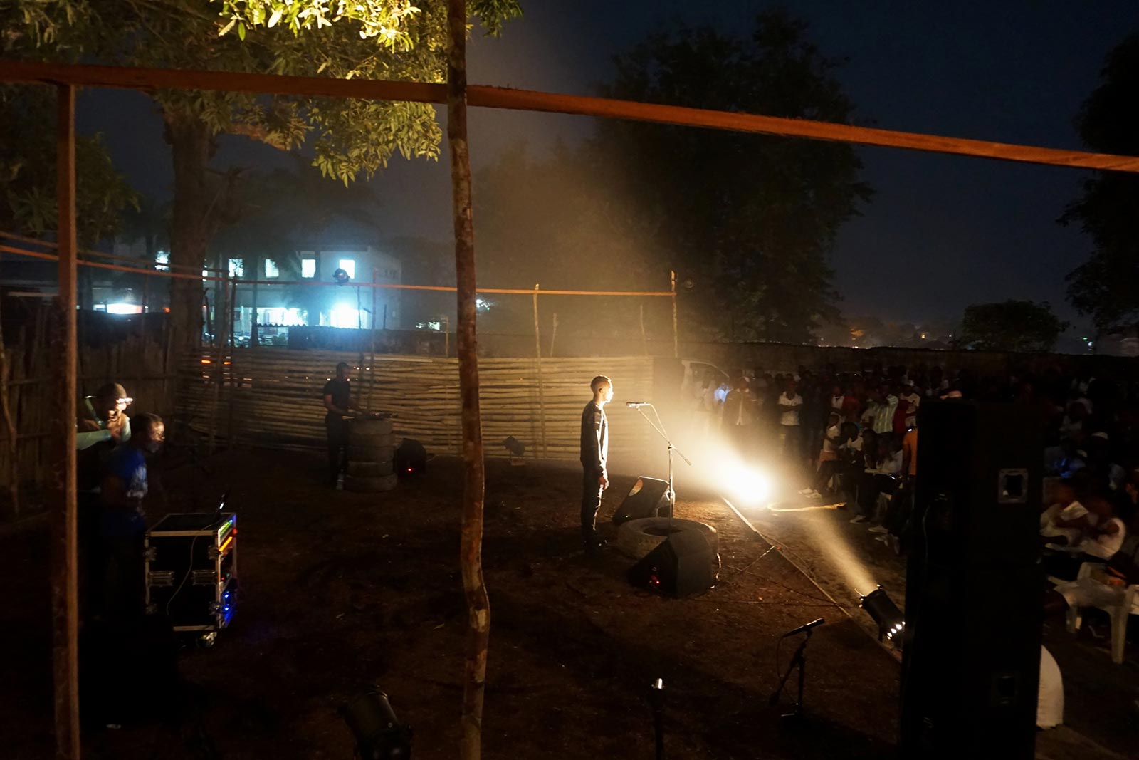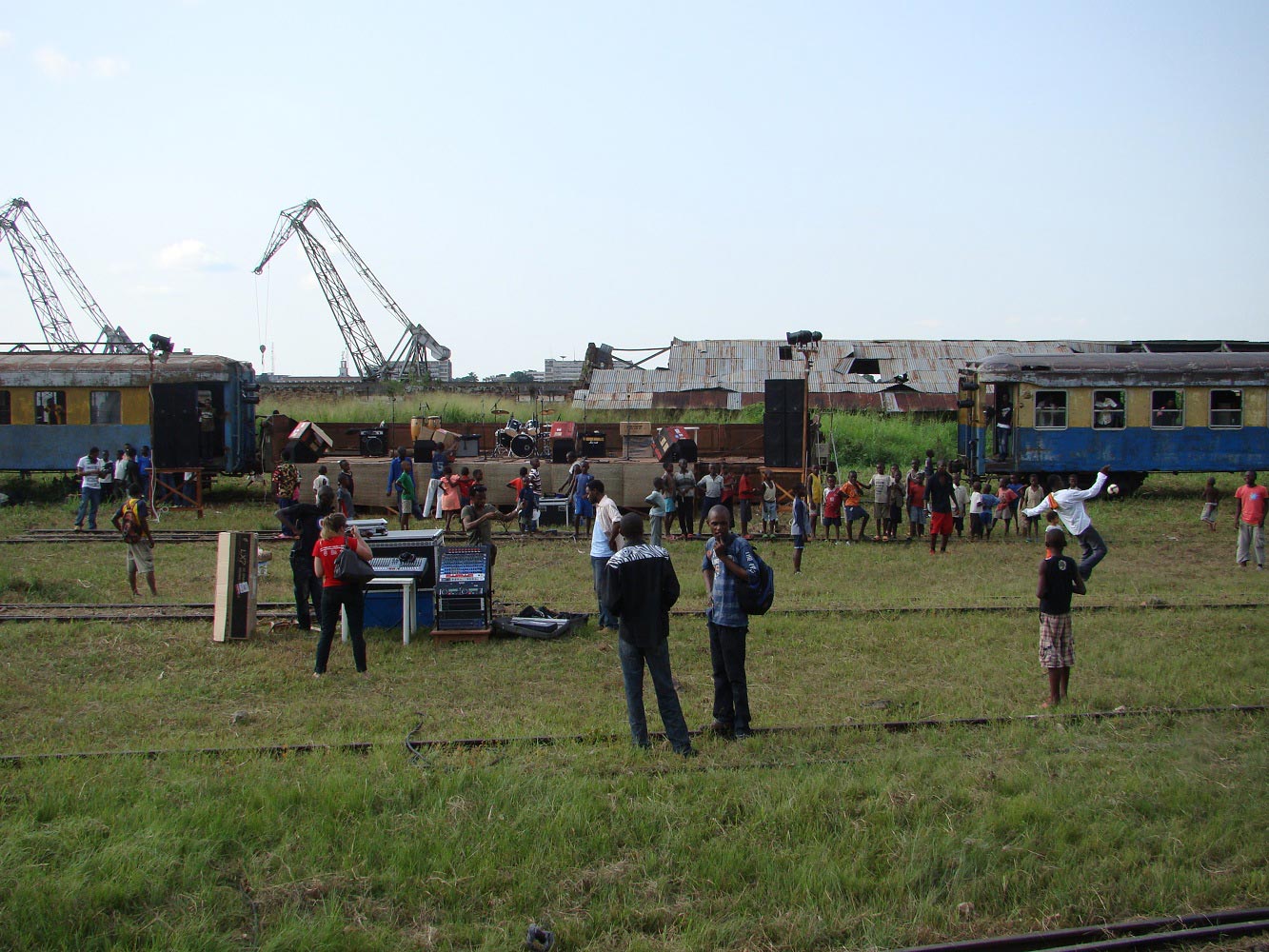 Studios Kabako also practices urban acupuncture— small-scale interventions that transform the larger urban context. While the organization maintains offices, recording, and rehearsal studios in the city center, it also brings its work to the rural fringes and vacant areas of Kisangani via mobile performances.