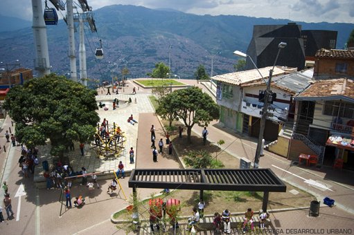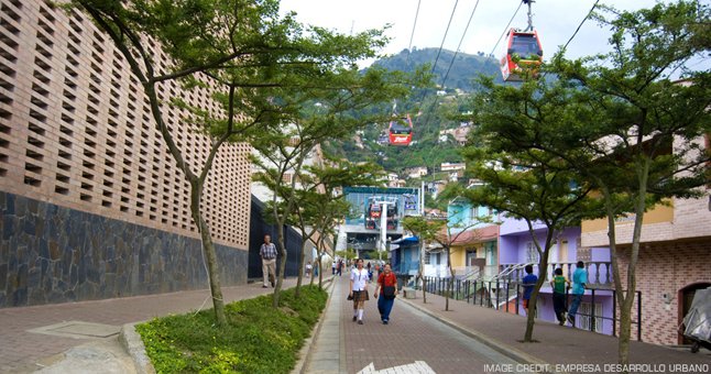 A number of these regenerative projects have become landmarks. One of Medellín’s most-visited attractions is the iconic Parque Biblioteca España, perched in the hilltops of Santo Domingo, a barrio once notorious for drug violence. Echeverri and Farjardo also helped extend the city’s modern railway by building a cable car system that connects some of Medellín’s poorest and most isolated neighborhoods to the rest of the city. Today, residents from the sprawling informal settlements on the hillside have more opportunities to take advantage of schools and the growing construction, textile, and tourism economies of the city.